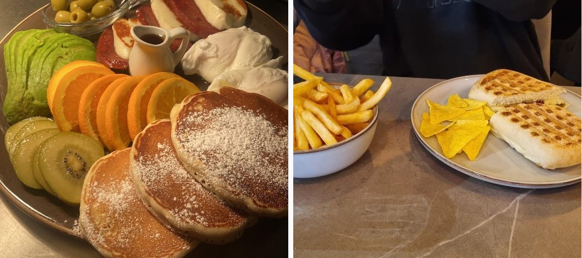 You must try the Mediterranean breakfast and the pancakes. The Mediterranean dish is a delightful blend of flavors, while the pancakes are light, fluffy, and topped with Nutella and fruits.